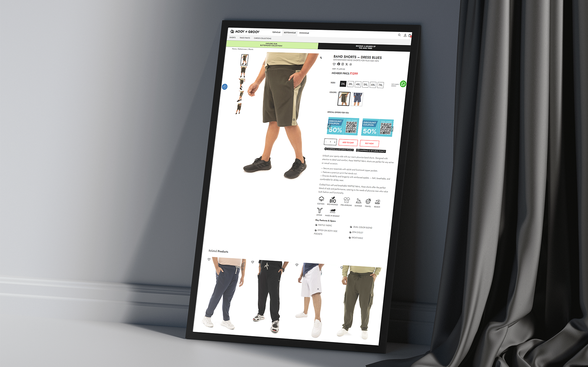 - Engaging Browsing LayoutFeatured collections like “Buttonless Polos,” “Graphic Tees,” “Gravity Cargos,” and more, styled for visual hierarchy and ease of browsing